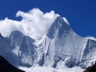 玉龍山主峰扇子陡,位于龍山南麓,土人稱為“拖斯般滿動(dòng)巖”,意為卜松毛卦峰,也稱白雪山。由麗不平原中看它,像是一座豎立起來(lái)的銀鏵。攀登上白雪山來(lái)看它,它像一把白綾折扇展開在那里,所以有扇子陡和雪斗峰的名稱?,F(xiàn)在由錦鄉(xiāng)谷的草坪中仰望上去,它像一片白玉殼,三面作放射狀指向天空,在碧天白云中閃閃發(fā)光。