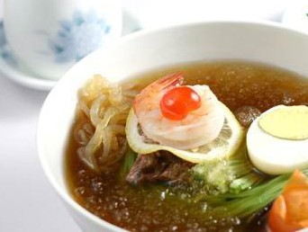 韓國的冷面想必都聽說過。在冰鎮(zhèn)的甜酸冷湯中,放著一團細細的面條,上面臥著兩塊白煮蛋,還有兩片水梨或蘿卜,十分好吃。冷面主要有用蕎麥面做的平壤冷面和用土豆做的咸興冷面,食用方法也可分為加湯的和用辣椒醬拌的兩種,口感十分筋道光滑。炎炎夏日,盤腿一坐,來一碗加冰冷面,爽呆了!|