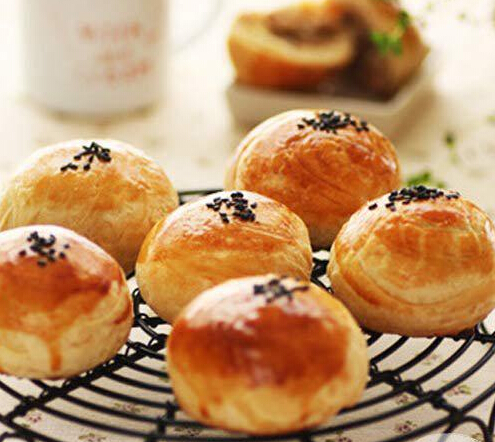 蟹殼黃是用發(fā)酵面加油酥制成皮加餡的酥餅。餅色與形狀酷似煮熟的蟹殼。成品呈褐黃色,吃口酥、松、香。蟹殼黃香酥,生煎饅頭鮮嫩,深受茶客喜愛。吳苑餅家的蟹殼黃非常地道,值得品嘗。