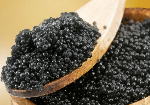 魚子醬:鮮美可口的魚子醬(красная)/鮭魚子醬(икра лососи)/黑魚子醬(черная)/鱘魚子醬(икра остра)、標(biāo)示。紅魚子醬也常做成沙拉。