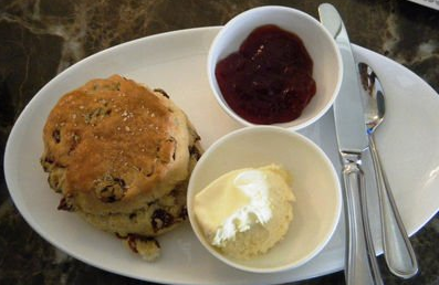奶油茶:奶油茶是德文郡和康沃爾郡的傳統(tǒng)食品,在英國(guó)的各類(lèi)茶館和咖啡店都有售。奶油茶通常由紅茶、司康(烤餅)、草莓醬以及凝固的奶油組成。如果您在不同的地方 品嘗奶油茶,會(huì)注意到細(xì)節(jié)上略有不同。比如,在德文郡,習(xí)慣把草莓醬抹在熱的司康上,然后再抹上奶油。而在康沃爾郡,一般則是先抹奶油。盡管傳統(tǒng)的奶油茶 是作為下午茶侍奉,但是只要你樂(lè)意,隨時(shí)都可以去享用。