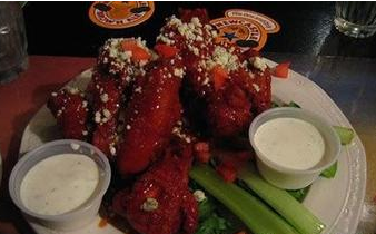 布法羅辣雞翅:將雞翅放到油中炸至焦脆,沾著熔化了的Blue cheese一起吃,其放在盤底的蔬菜,因吸收了雞翅上掉下的油,再普通的蔬菜也變美味了。這道菜既不油膩,又很有口感!