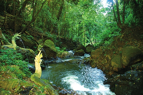 此外,傳說(shuō)中釋迦牟尼巨腳下的“佛腳印”,地表水溫達(dá)50攝氏度的佛賜圣水,流金溢彩的銅鑄座佛,引來(lái)四方無(wú)數(shù)善男信女。這是一幅人類與自然和諧統(tǒng)一的詩(shī)情畫(huà)