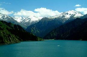 巍巍天山,口銜天池,東西橫亙2500余公里,南北寬度250至350公里。西起中哈邊境,東至星星峽,在我國境內綿延1700公里。整個天山山系由3列山脈組成,由北往南分別稱為北天山、中天山和南天山。 天池即位于北天山中段的博格多山北坡。 博格多山向西,山勢逐漸高峻。20多座海拔5000米以上的山峰將廣袤、深遠的新疆奇麗、險峭的另一面打開。而回首東望,山勢逐漸低矮。突然,博格達峰以海拔5445米的挺拔身姿陡起于群山叢中。與另外兩座海拔分別為5287米和5213米的山峰構成了著名的“雪海三峰”,成為新疆的象征。天池也是因為陡然升起的高度而顯得高峻異常。其實它的海拔為1943米,嚴格來說還不到“半山腰”。 茂密的森林、廣闊的草原、眾多的山系――天山作為新疆“生命的搖籃”,占新疆全區(qū)面積三分之一強(57萬多平方公里)。其山體由山地、山間盆地和山前平原三部分組成。