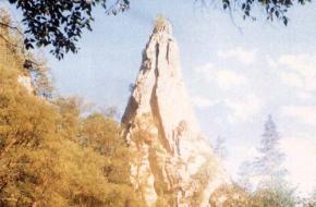 被稱為沙漠之舟,絲綢之路使者的駝峰嶺,綠裝翠裹,巍然屹立,迎接著游客的來臨。風光無限的天窗眼更乃天下奇觀。世之罕見,在高插插云天的山壁上“洞天石扉,訇然中開”,仿佛觀察天體的放遠鏡,使我們看到那山外青山峰外峰的壯美景致。天窗眼往前,群山環(huán)繞,峭壁聳峙,壁角有藏龍洞,溪水入洞復出,婉若龍口吐珠;洞側有一巨石相對而立,稱虎探龍穴之石;抬頭仰望,天空被峭壁裁為月牙形,曰藏龍臥虎半月天。金剛峰和七夕橋中間的針葉林中,有一片特別引人注目的紅樺林,在綠色的點綴下,極為艷麗,惹人喜愛。那氣冠蒼穹,摩天頂立的玉柱,更使游人嘆為觀止。