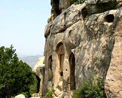 在山西太原市西南40公里天龍山腰。天龍山亦名方山,海拔高1700米。這里風(fēng)光秀麗,歷史上曾是北齊皇帝高洋之父高歡的避暑宮。四周山巒起伏,遍山松柏蔥郁,山頭龍王石洞泉水蕩漾,山前溪澗清流潺潺。天龍山石窟創(chuàng)建于東魏(公元534—550年),高歡在天龍山開鑿石窟,高歡之子高洋建立北齊的晉陽(yáng)為別都,繼續(xù)在天龍山開鑿石窟。隋代楊廣為晉王,繼續(xù)開鑿石窟,唐代李淵父子起家于晉陽(yáng),建造石窟達(dá)到高峰。