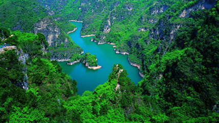 峰林峽以山水交融的翡翠湖為主體,融山的雋秀、水的神韻為一體,被譽(yù)為“人間天上一湖水,萬(wàn)千景象在其中”,更有“雲(yún)臺(tái)天池”的美譽(yù)。境內(nèi)十里平湖宛若一條在峽谷中飄拂的玉帶,湖區(qū)島嶼星羅棋布,湖周峰巒起伏,湖面波光漣漪。
