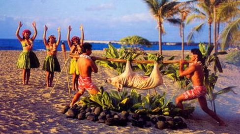 盧奧是夏威夷特有的聚餐大會,一般在一些重要的時刻舉行,比如婚禮、慶典或是生日等,自古就有。而這個盛宴上最不缺 少的就是用夏威夷傳統(tǒng)方式烹飪的烤豬肉以及各色來自島上的其他菜肴。其實(shí),對于盧奧來說,吃只是一個方面,極具夏威夷特 色的音樂和舞蹈才是主角。盛宴開始前,一些當(dāng)?shù)厝嗽谏碁┥涎菔靖鞣N夏威夷及南太平洋的傳統(tǒng)手工藝,游客們興致勃勃地學(xué)習(xí) 草裙舞,遠(yuǎn)處,海面波光閃耀,帆影唱晚。