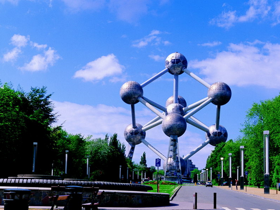 原子球塔:原子球塔位于布魯塞爾北郊,是這座城市的著名地標之一。這座精致新穎的時空模型是1958年世界博覽會的紀念建筑物,將α鐵的正方體晶體結(jié)構(gòu)放大了1650億倍,包括9個直徑18米的球體,之間由鋼管連接,最高處高達102米。游客可以進入其中3個球體,頂部的球體是觀賞布魯塞爾全景的好地方。?