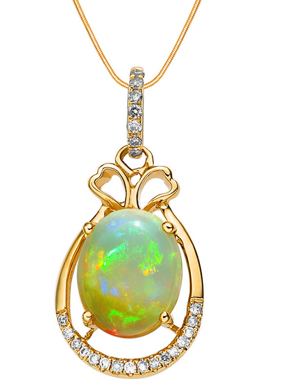 歐泊是一種獨特的寶石,因為它具有變彩,在陽光的照耀下能發(fā)出五顏六色、絢麗奪目的光芒。在澳大利亞土著居民的故事里,歐泊絢爛奪目的顏色是彩虹接觸地面形成的。歐泊可以被加工成各種珠寶首飾,如項鏈、耳墜、戒指等。