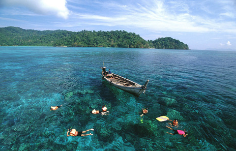 皇帝島,島上不僅有優(yōu)美完整的天然熱帶島嶼風光,珊瑚礁的海岸景色同樣讓人難忘。由于開發(fā)較晚,到此的游客數(shù)量比較少,與喧鬧的普吉島相較,這里沙灘的環(huán)境格外清幽,附近只有零星泳客、滑浪發(fā)燒友,及耳畔傳來的浪濤拍岸聲,儼然一副“世外桃源”的美好景象。