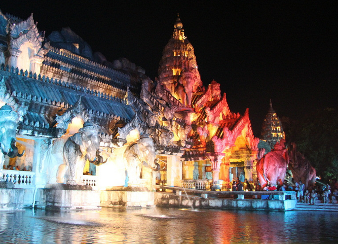 幻多奇樂園:幻多奇樂園1998年底正式開幕,是一個類似拉斯維加斯風格的主題樂園。它位于卡馬拉海灘,這里以豐富多彩的夜生活而著名,也是普吉島最受歡幻迎的旅游點。每晚幻多奇劇場都會表演精彩的節(jié)目,如歌舞、魔術(shù)、雜技以及大象表演,有英語和泰語講解。這里以一座古老村落的形式出現(xiàn),向游客展示泰國傳統(tǒng)文化神秘的一面,尤其是最后十幾頭大象一起走到舞臺上,氣勢十分壯觀。