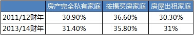 圖二:2011/12-2013/14期間澳洲家庭房產(chǎn)所有權(quán)情況