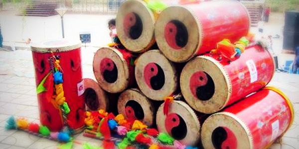 太平鼓有“天下第一鼓”之美譽(yù),蘭州的太平鼓舞,以舞姿優(yōu)美、風(fēng)格獨(dú)特而著名,其中尤以“秧歌鼓舞”最為精妙。表演者一律頭戴英雄帽,身穿皂隸服,腰系灰絲帶,腳蹬麻窩鞋,肩背太平鼓。領(lǐng)隊(duì)以一面扎有紅綠繡球的竹竿統(tǒng)一指揮,表演者根據(jù)指令,右手緊握鼓繩,左手不停地將鼓身舉架到不同方位,一邊擊鼓一邊舞蹈,熱烈歡快,氣勢非凡。