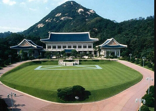 青瓦臺(tái):(Chong Wa Dae)是韓國(guó)總統(tǒng)官邸,位于漢城市鐘路區(qū)世宗路一號(hào)。這里原來(lái)是高麗王朝的離宮,朝鮮王朝建都漢城后,把它做為景福宮后園,修建了隆武堂、慶農(nóng)齋和練武場(chǎng)等一些建筑物,并開(kāi)了一塊國(guó)王的親耕地。1948年8月大韓民國(guó)成立的同時(shí),它成為總統(tǒng)官邸并改名為景武臺(tái)(Kyung Mu Dae)?,F(xiàn)在,青瓦臺(tái)主樓為總統(tǒng)官邸,有總統(tǒng)辦公室、接見(jiàn)廳、會(huì)議室、居室,配樓有秘書(shū)室、警護(hù)室和迎賓樓等。