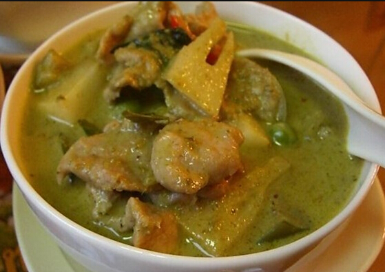 綠咖喱牛肉,椰奶味道濃濃的,牛肉嫩嫩的,很不錯的。超級喜歡。就是長得有點點惡心。哈哈。