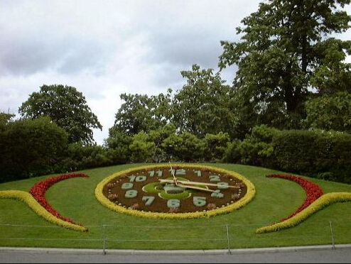 花鐘:日內(nèi)瓦著名景點(diǎn)。瑞士號(hào)稱(chēng)“花園之國(guó)”,同時(shí)又是“鐘表之鄉(xiāng)”,而更奇妙的是瑞士的能工巧匠絕妙地將花卉之美同鐘表的制造工藝完美地結(jié)合起來(lái),別出心裁地創(chuàng)造出了“花鐘”。 瑞士人民對(duì)“花鐘”的設(shè)計(jì),頗為自豪,日內(nèi)瓦市的地圖,就采用“花鐘”作為該市的標(biāo)記。