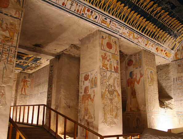 帝后谷跟帝王谷近似,都是一個(gè)個(gè)地下墓室,不合的是它們不是法老的陵墓,而是第十九、二十王朝期間法老們的王后、妃嬪和其它王族成員的陵墓。